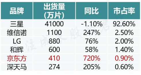 不出意外2019年京东方将成为国内第一大OLED面板供应商。